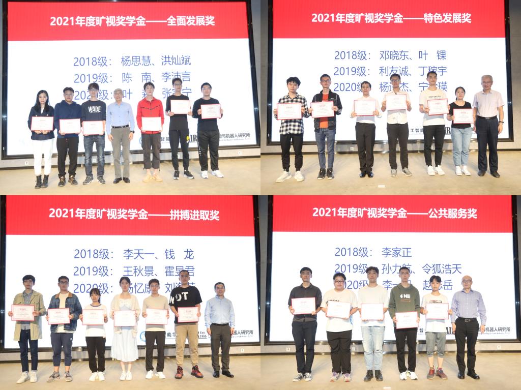 大会第四项,进行2021年度威廉希尔中国官网“旷视奖学金”颁奖仪式。由郑南宁教授、杨森教授、辛景民教授和兰旭光教授分别为获得全面发展奖、特色发展奖、拼搏进取奖和公共服务奖的同学颁奖。