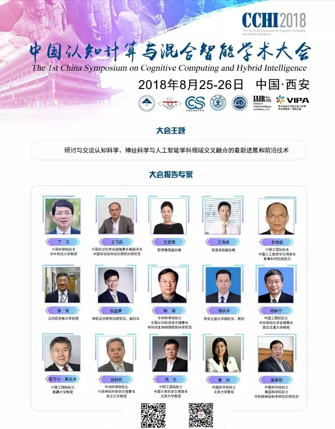 人工智能经过60余年的发展,在移动互联网、大数据计算、超级计算机、脑科学等新理论新技术和经济发展需求的共同驱使下,正在进入一个崭新的时代。人工智能呈现出深度学习、跨界融合、认知计算、混合智能、人机协同、自主操控等新特征,同时又受脑科学研究启发,类脑智能也在蓄势待发芯片化硬件化平台趋势更加明显。2017年,按照党中央、国务院部署,由刘延东副总理直接领导,科技部、发改委、工程院会同相关单位在系统梳理、深入研究、广泛征求意见的基础上,研究起草了《新一代人工智能发展规划》(以下简称《规划》)。在此背景下,国家自然科学基金委员会信息科学部与中国自动化学会、中国认知科学学会联合主办的“第一届中国认知计算和混合智能学术大会”,将于2018年8月25日至26日在陕西省西安市举办。
